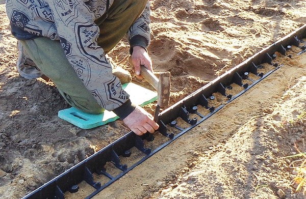 Obrzeże do trawników można formować w różne łuki lub skręcić je wokół drzewa. Montuje się je poniżej poziomu terenu, tak, aby widoczne było około 5 mm z jego górnej krawędzi. W przypadku oddzielenia chodnika lub bruku plastikowe obrzeże trawnikowe powinno mieć co najmniej taką samą wysokość jak bruk.