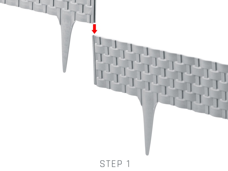 2. Do połączenia kolejnego elementu należy wykorzystać przygotowanie wcześniej zamki na krawędziach palisad. Wystarczy połączyć palisady, aby stworzyć dowolnej długości krawężniki.