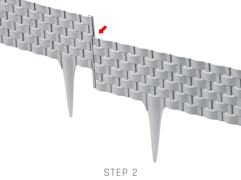 2. Do połączenia kolejnego elementu należy wykorzystać przygotowanie wcześniej zamki na krawędziach palisad. Wystarczy połączyć palisady, aby stworzyć dowolnej długości krawężniki.