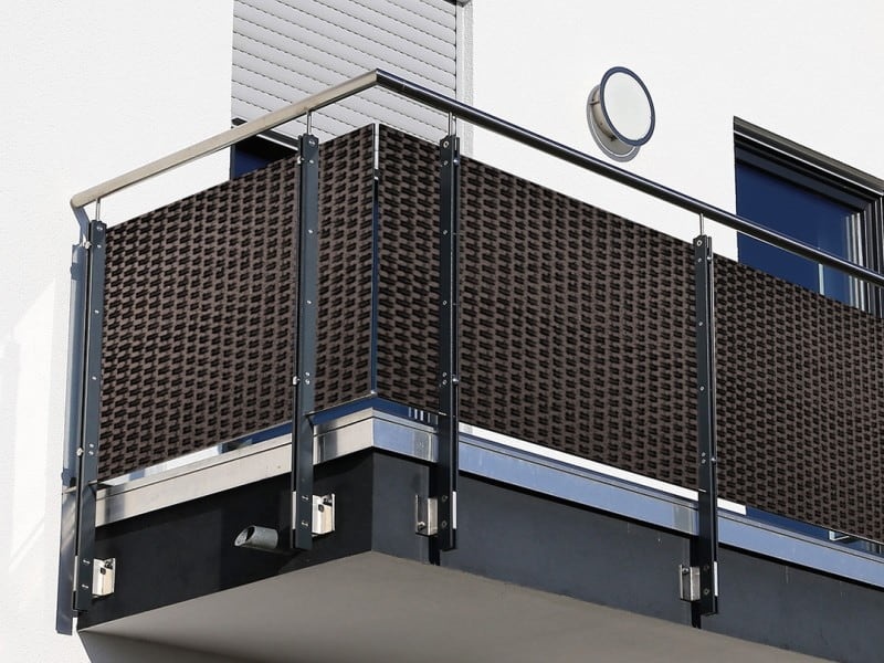 Osłona wykonana z plecionych paskóe technorattanu (o szerokości 9 mm) idealnie nadaje się do zacienienia balkonu lub jako osłona na płot. Technorattan jest ciężko odróznić od naturalnego materiału.
