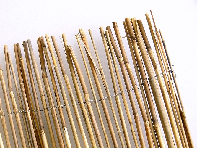 Osłonę trzcinową można również zamontować na płocie stojącym, wystarczy przymocować ją za pomocą mocnego drutu. W razie potrzeby można dopasować ją do żądanej wielkości. Następnie należy związać źdźbła z powrotem przy użyciu drutu wiązałkowego, który trzyma szczepy razem, aby osłona się nie rozleciała.