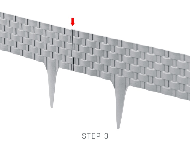 2. Do połączenia kolejnego elementu należy wykorzystać przygotowanie wcześniej zamki na krawędziach palisad. Wystarczy połączyć palisady, aby stworzyć dowolnej długości krawężniki.