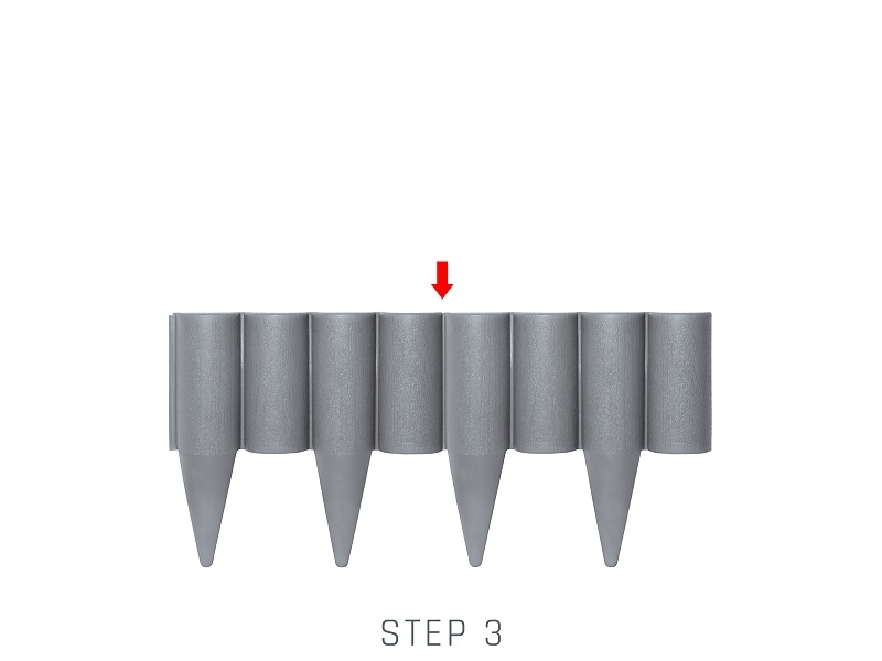 Następnie wystarczy zamocować kolejną palisadę, którą zatrzaskuje się w przygotowanych wcześniej zamkach na zamontowanej już wcześniej palisadzie. W ten sposób mozna stworzyć nieograniczonie długą listwę krawężnikową.