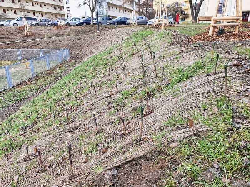poziom nachylenia tego wzniesienia jest już na granicy możliwości poużycia samej przeciwerozyjnej ochrony, natomiast wysokość jego nie jest tak duża, także jeżeli chce Pan zabezpieczyć swoje zbocze: