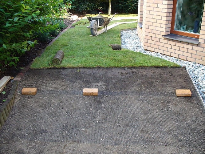 W przypadku zakładania trawnika z rolki, siatka jest umieszczana bezpośrednio pod nim. W przypadku tradycyjnego obsiewu trawą konieczne jest ułożenie na siatce warstwy humusu o grubości 8 cm.